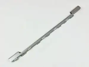 Будьте осторожны при снятии лентового кабеля клавиатуры-трекпада, убедитесь, что задняя часть верхней крышки отщёлкнута в области возле шарнира. Легко случайно согнуть стойки для винтов по обе стороны клавиатуры.