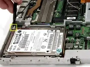 Удалите один винт, вставленный через кусок электромагнитной ленты (EMI) рядом с нижним краем дисплея.