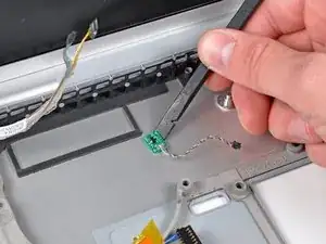 Отключите ленточный кабель трекпада и клавиатуры от логической платы.