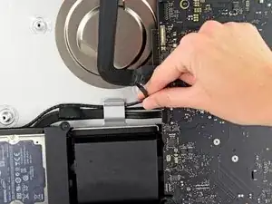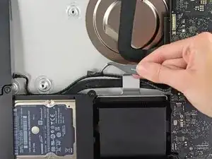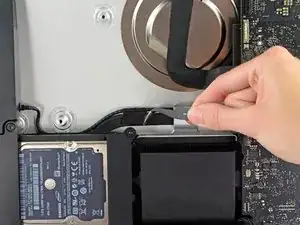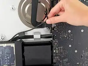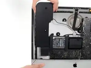 Поднимите и извлеките вентилятор из iMac.
