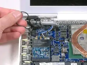 Отведите кабель левого динамика от под кабелем MagSafe.