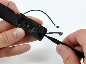 Выведите микрофонный кабель из канала в левом динамике и с помощью наконечника лопатки извлеките микрофон из его корпуса в левом динамике.