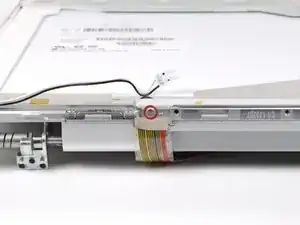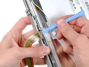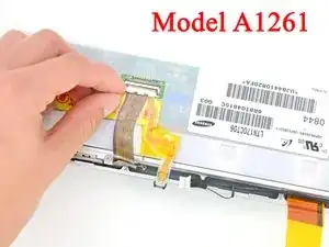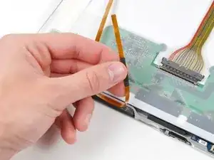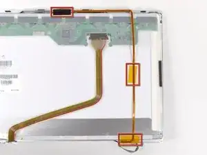 Снимите два куска ленты, фиксирующие кабель данных дисплея к ЖК-панели.