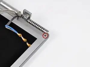 Не забудьте при установке дисплейного блока заново поставить заглушки концов петли. Заглушки специфичны для стороны, поэтому убедитесь, что выступы направлены к нижнему корпусу.