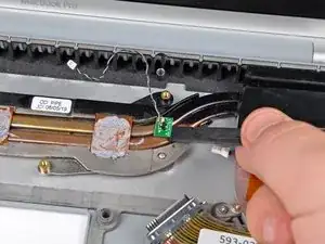 Левый температурный датчик для моделей A1151 и A1212 является средним температурным датчиком для A1229. Используйте это руководство для замены среднего температурного датчика в MacBook Pro 17" модели A1229.