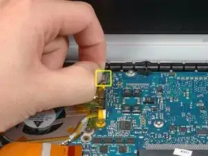 Отключите плоский кабель трекпада и клавиатуры от логической платы, при необходимости удалив ленту.