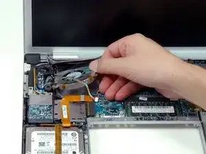 Отключите кабели инвертора, левого вентилятора и датчика окружающего света слева, поместив лопаточку под каждый кабель и поддев вверх.
