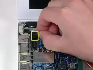 Отключите кабель платы MagSafe от платы логики, потянув разъём-защёлку вправо.