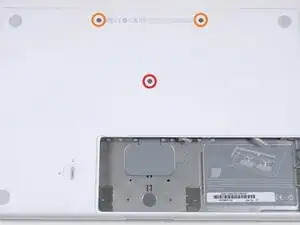 Выкрутите три равномерно расположенных винта Phillips 000 из задней стенки отсека аккумулятора.