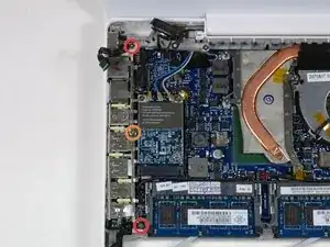 Два винта Phillips длиной 7,5 мм — с обоих концов левой рамки блока интерфейсов ввода-вывода.