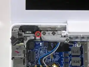 Выкрутите один винт Phillips длиной 9 мм, крепящий левый динамик к нижней крышке.