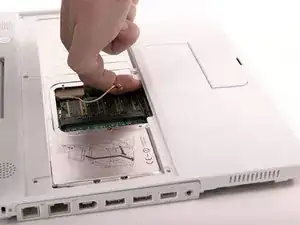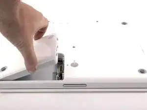 Возьмитесь за прозрачную пластиковую язычок карты AirPort и потяните в сторону дисплея.