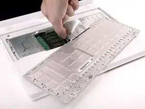 Поднимите кабель клавиатуры от материнской платы, удерживая кабель как можно ближе к разъёму.