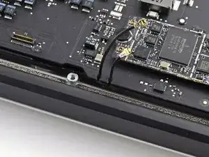 Удалите один винт T5 Torx длиной 2,9 мм, который крепит плату AirPort/Bluetooth к плате логики.