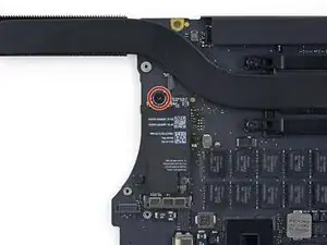 Снимите один винт T5 Torx длиной 2,9 мм, крепящий плату AirPort к логической плате.