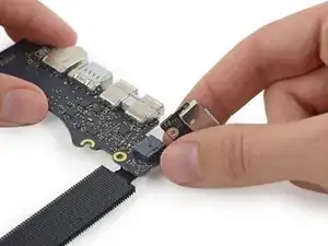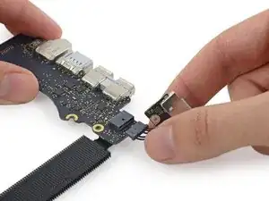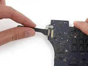 Вытяните разъём MagSafe 2 прямо из его гнезда (параллельно логической плате).