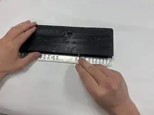 Используйте небольшой пинцет, чтобы осторожно отключить шлейф и вынуть материнскую плату из клавиатуры.