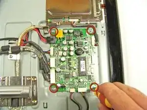 Удалите четыре винта, удерживающие материнскую плату на дисплее.