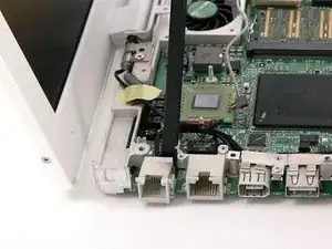 Поднимите левую сторону компьютера и сдвиньте лицевую панель портов в сторону, чтобы снять её.