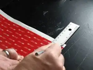 Наклейте две полоски 3 мм × 170 мм, клеевой стороной вниз, на фланец между бампером и экраном в нижней части блока дисплея.