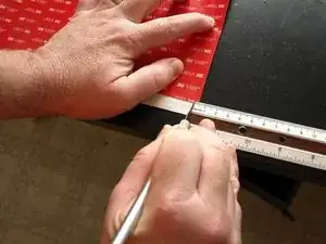 Возьмите лист 3M 4905 VHB размером 12х12 дюймов, положите его на стол красной клеевой стороной вверх. Белая защитная подложка должна выступать сверху и снизу.