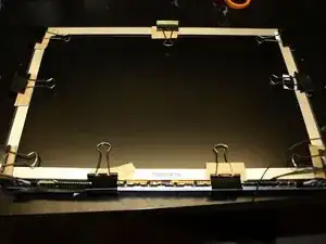 После полного затвердевания клея для рамки установите сборку дисплея в соответствии с инструкцией Замена дисплея в MacBook Pro 15" Unibody Mid 2010.