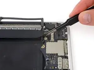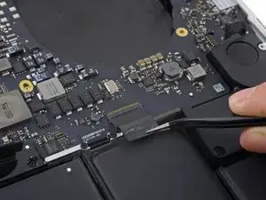 Снимите один винт T5 Torx длиной 2,9 мм, фиксирующий SSD на плате.