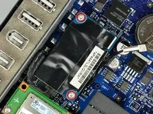 Удалите два винта Torx T6 длиной 5.5 мм, крепящие модем к материнской плате.