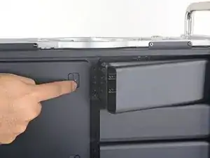 Сдвиньте защёлку крышки ОЗУ влево пальцем, чтобы разблокировать крышку.