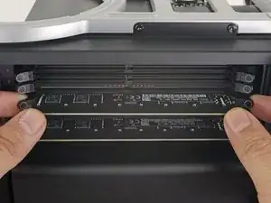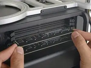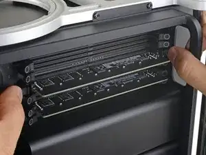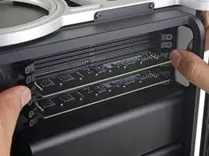 В этом руководстве показано, как открыть Mac Pro для замены или установки дополнительных модулей ОЗУ. Выполнить эту процедуру можно без использования инструментов.