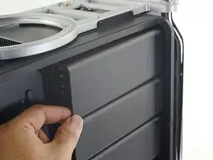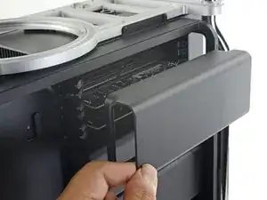 Отведите освобождённый край крышки назад к компьютеру слегка, затем потяните крышку прямо наружу и от Mac Pro.