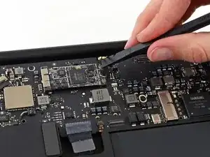 Тяните кабель параллельно плоскости логической платы в направлении правого края Air.