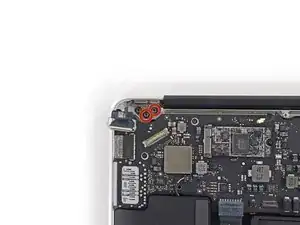 Держа Air устойчиво, удалите оставшийся шуруп T8 Torx длиной 4,9 мм с левого кронштейна дисплея.