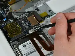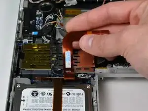 Снимите оранжевый кабель жесткого диска сверху кармана ExpressCard.
