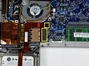 Отключите разъемы жесткого диска и ExpressCard с левой стороны материнской платы.