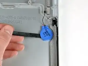 Совет по сборке: Две центральные защелки DVD редко возвращаются на место должным образом без помощи, а давление вниз просто деформирует рамку вокруг слота для DVD. Поддержите рамку, вставив пластиковую лопатку в слот для DVD прямо под местом защелки, пока она не станет впритык, затем нажмите вниз, пока не услышите щелчок.
