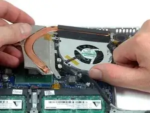Отклейте фольгированную ленту между вентилятором и оптическим приводом.