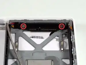 Снимите винт Phillips 2,8 мм, закрепляющий оптический привод.