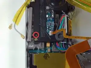 Отделите серый и чёрный провода динамика от верхней части логической платы, при необходимости удалив ленту.