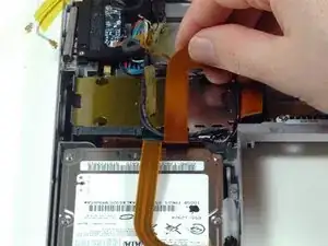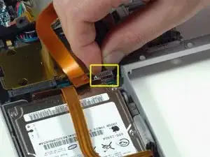 Отлейте оранжевый кабель жесткого диска от верхней части корзины ExpressCard.