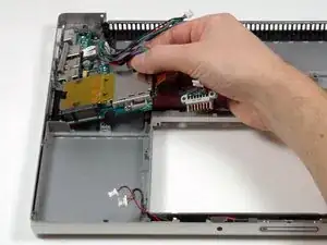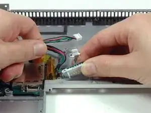 Поднимите левую сторону платы логики и отсоедините многоцветный кабель питания от нижней части платы.