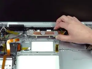 Поместите вентилятор над картой Airport. Полное удаление вентилятора из компьютера не обязательно.