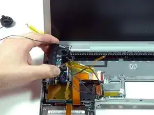 Отключите шлейф трекпада и клавиатуры от логической платы, при необходимости удалив ленту.