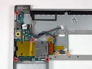 Девять серебристых винтов T6 Torx 4,7 мм, фиксирующих логическую плату к нижней крышке.