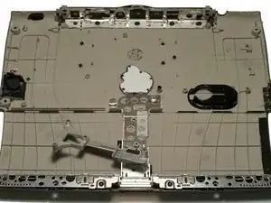 Снимите один короткий чёрный винт Torx, который крепит металлический каркас к нижнему корпусу.