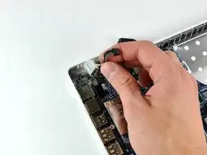Плата MagSafe теперь полностью отсоединена и может быть свободно снята с логической платы.