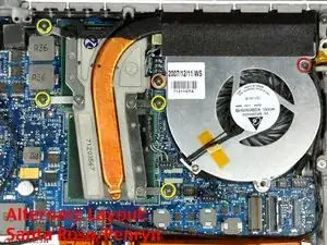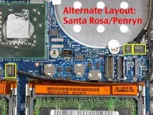 На моделях Santa Rosa/Penryn расположение винтов немного отличается. См. второе изображение.