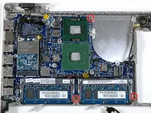 Удалите три винта Phillips 3 мм, закрепляющие логическую плату в нижнем корпусе.