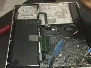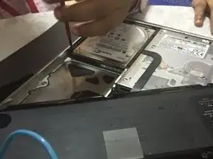 Отверните винты крепления жёсткого диска, затем извлеките жёсткий диск объёмом 250 ГБ и установите вместо него диск объёмом 500 ГБ