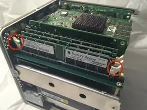 Освободите заднюю ручку PowerMac. Осторожно выдвиньте куб, удерживая конец ручки. Следите за тем, чтобы никакие детали не зацепились за внешний корпус.